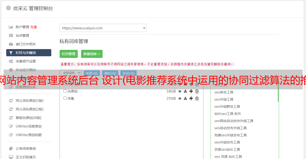 优采云 发布时间: 2021-10-11 04:05网站内容管理系统后台 设计(电影推荐系统中运用的协同过滤算法的推荐引擎Taste