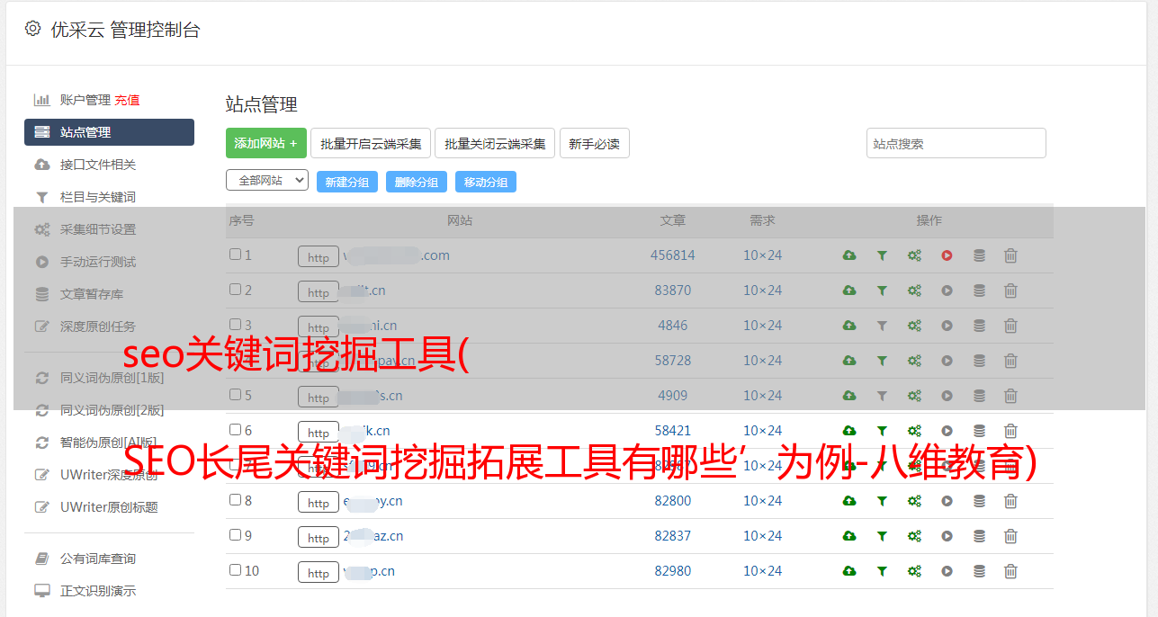 我的想法是写一篇关于“SEO关键词挖矿工具”文章的文章。然后我的核心词扩展关键词如:'关键词扩展'、'关键词挖掘'SEO关键词工具',甚至使用'SEO'、'< @关键词'为核心关键词展开长尾关键词。然后再次过滤。
