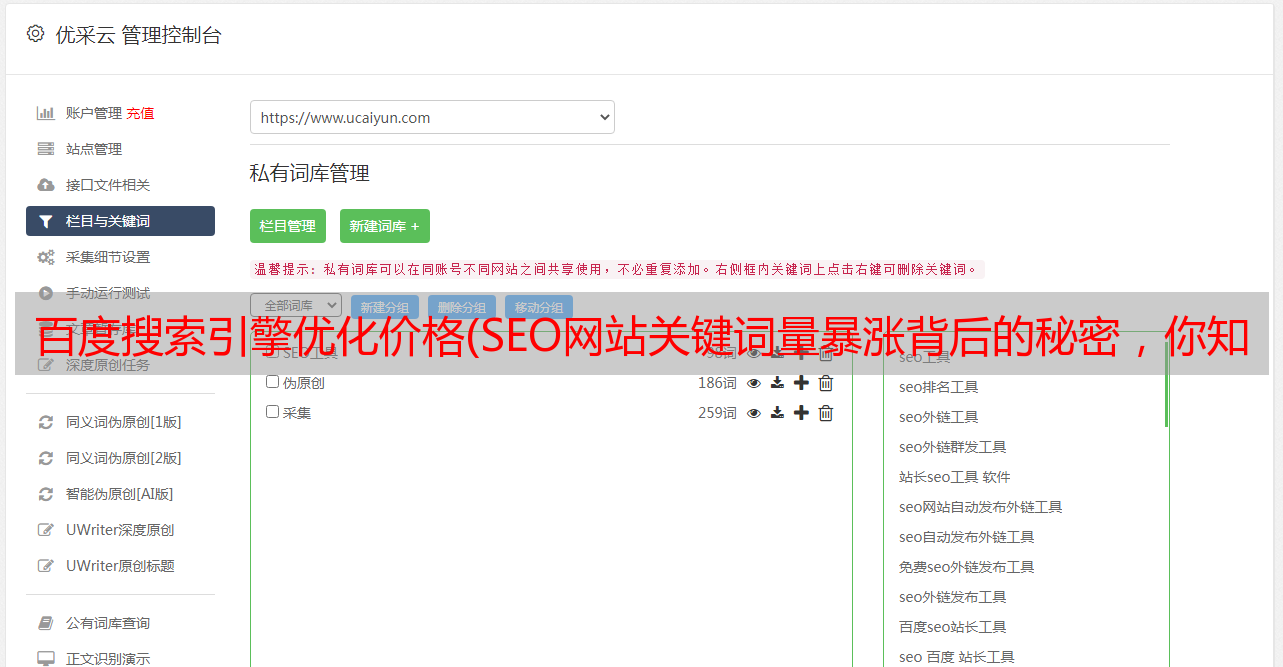 优采云 发布时间: 2021-10-11 09:18百度搜索引擎优化价格(SEO网站关键词量暴涨背后的秘密,你知道吗?)