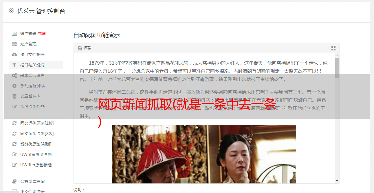 优采云 发布时间: 2021-10-11 15:16网页新闻抓取(就是一条中去一条