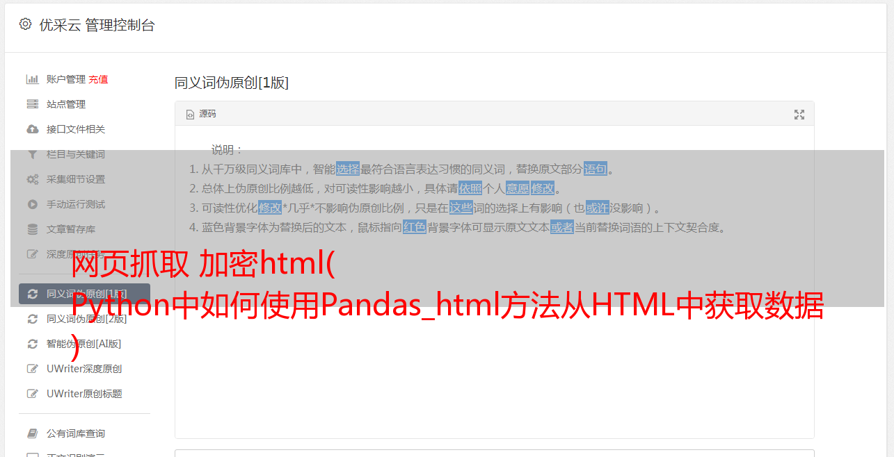 优采云 发布时间: 2021-10-11 18:12网页抓取 加密html(