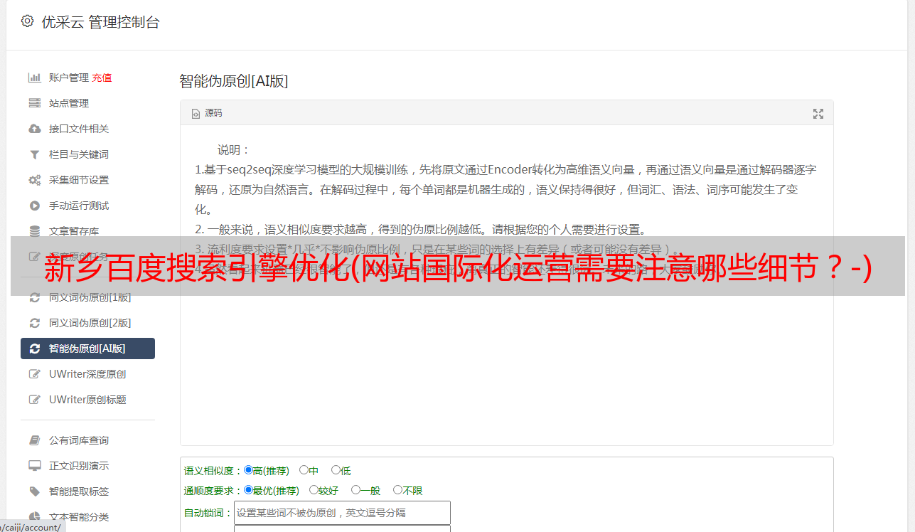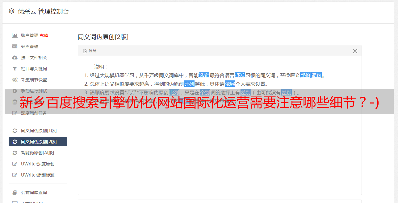 优采云 发布时间: 2021-10-11 19:17新乡百度搜索引擎优化(网站国际化运营需要注意哪些细节?-)