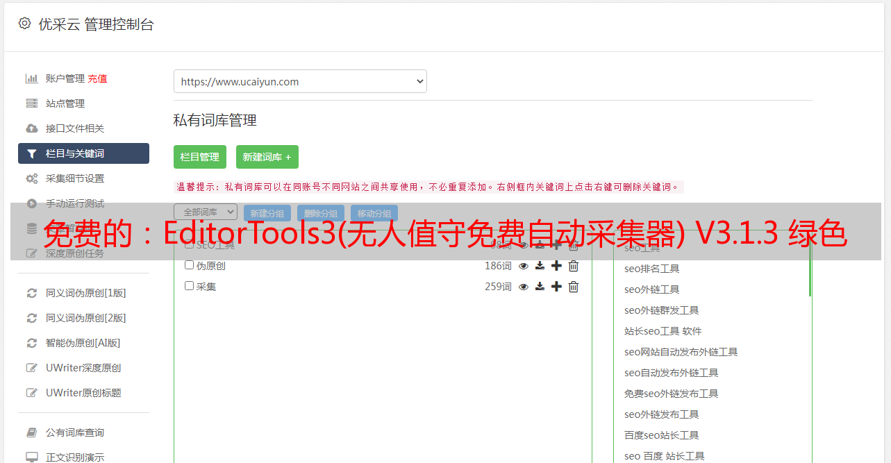免费的:EditorTools3(无人值守免费自动采集器) V3.1.3 绿色免费版
