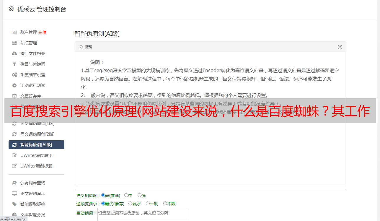 优采云 发布时间: 2021-10-11 20:27百度搜索引擎优化原理(网站建设来说,什么是百度蜘蛛?其工作原理是什么)