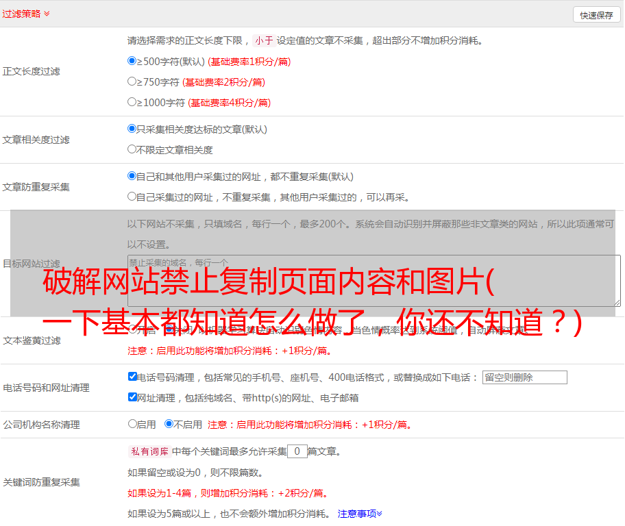 优采云 发布时间: 2021-10-12 00:02破解网站禁止复制页面内容和图片(