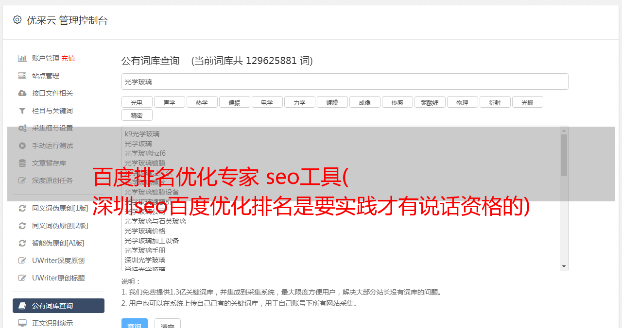 优采云 发布时间: 2021-10-12 01:08百度排名优化专家 seo工具(
