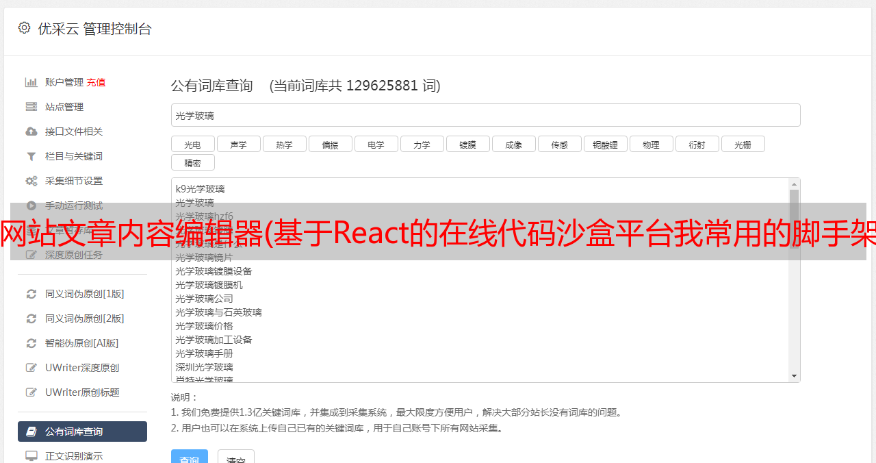 优采云 发布时间: 2021-10-12 01:19网站文章内容编辑器(基于React的在线代码沙盒平台我常用的脚手架都支持,