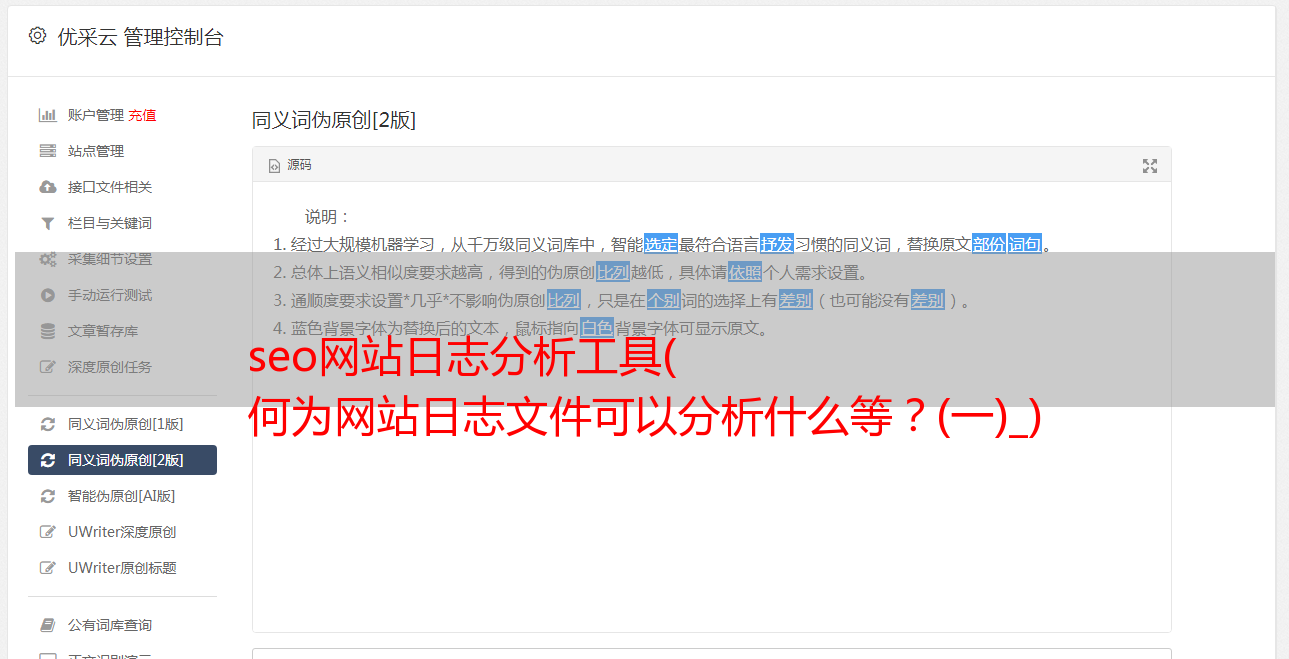 优采云 发布时间: 2021-10-12 04:29seo网站日志分析工具(