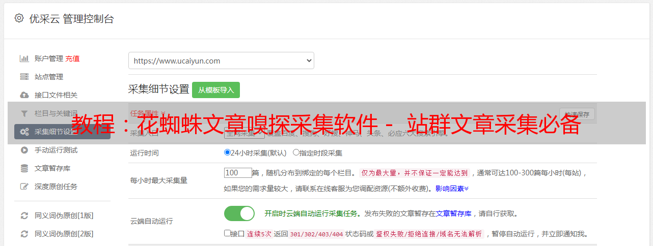 许多用户习惯于使用采集软件(例如:优采云类别)将文章 采集传送到本地,然后使用其他文本子字符串处理软件来剪切文章。这样做并不坏,但又麻烦又耗时。对于网站较少的网站站长,在网站的内容不经常更新但网站的数量很大的前提下,此操作是可行的。优化团队很大或有多个站群服务器群集。 站群的每个组都像这样琐碎的采集一样组织起来,这是一件令人头疼且烦人的工作,而对于站群优化,则需要每天进行更新文章,这种琐碎的文章 采集网站管理员不负责这项工作,因此基本团队专注于必要的优化文章 采集。特别发展已经进行。集中完成所有这些琐碎的任务,只需花费一半的精力即可获得两倍的结果。
