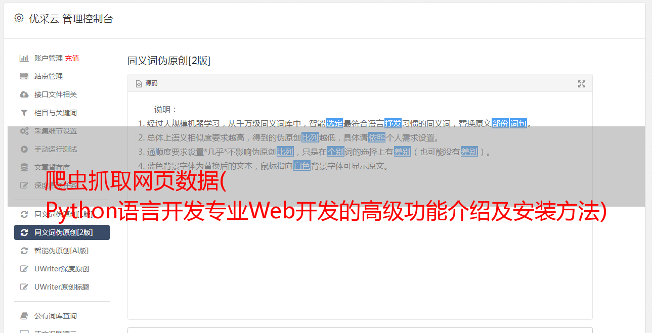 爬虫抓取网页数据( Python语言开发专业Web开发的高级功能介绍及安装方法)