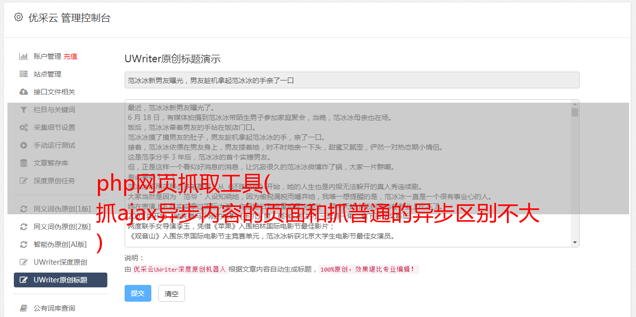 php网页抓取工具( 抓ajax异步内容的页面和抓普通的异步区别不大 )