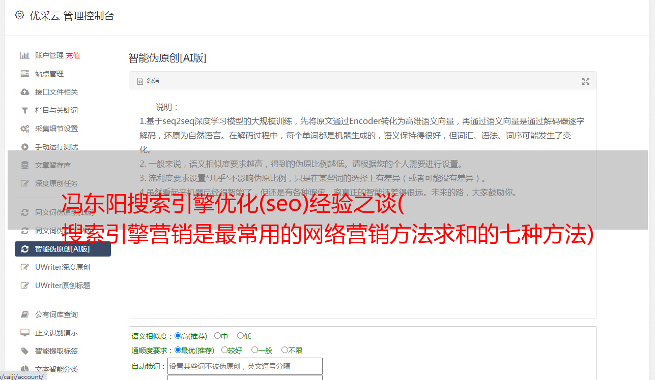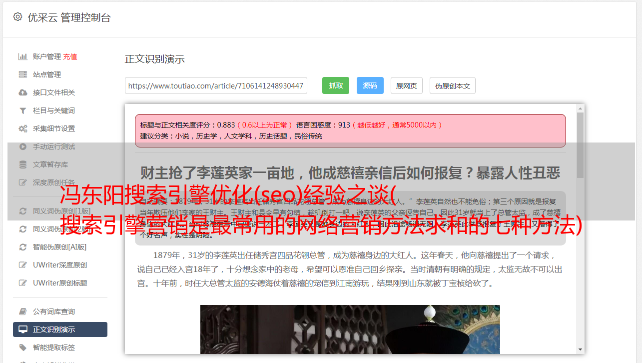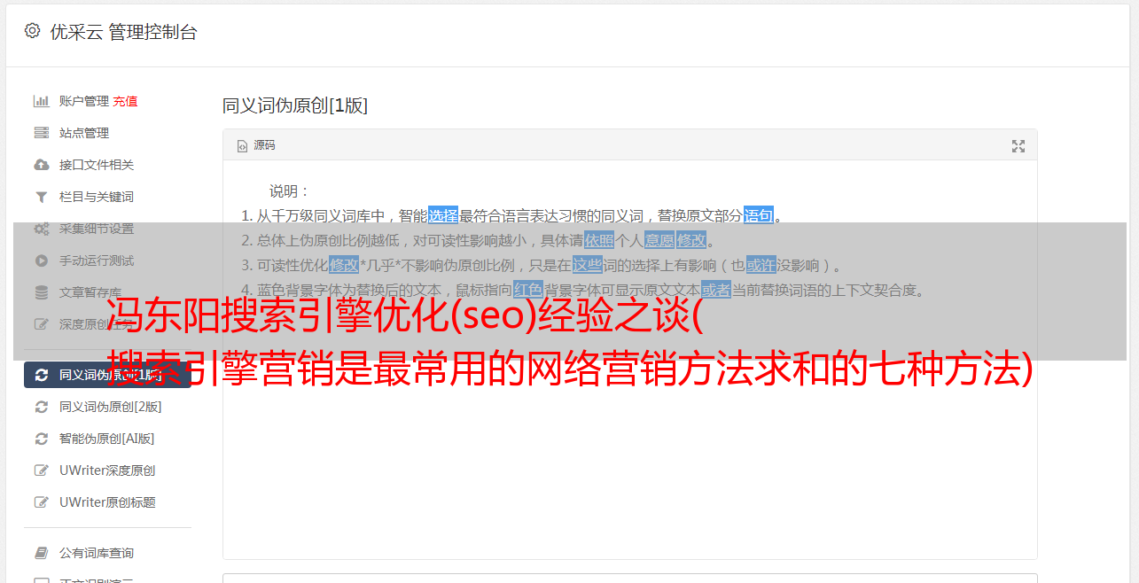 优采云 发布时间: 2021-10-12 13:31冯东阳搜索引擎优化(seo)经验之谈(