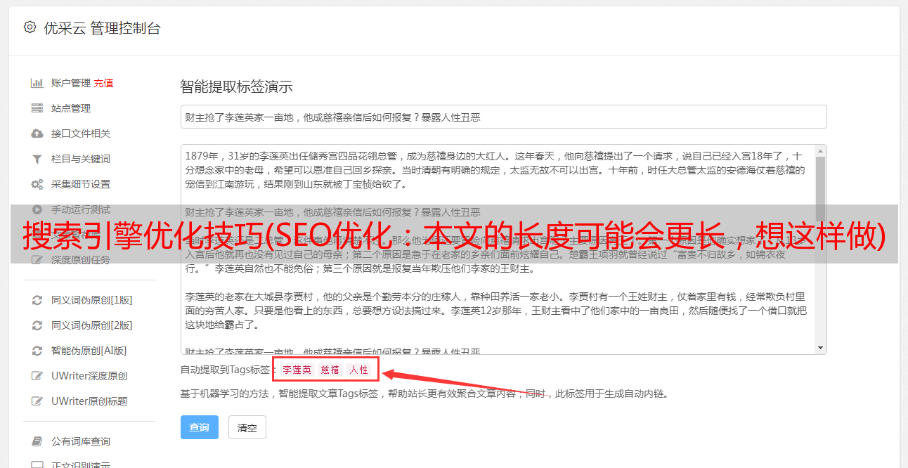 优采云 发布时间: 2021-10-12 14:38搜索引擎优化技巧(SEO优化:本文的长度可能会更长,想这样做)