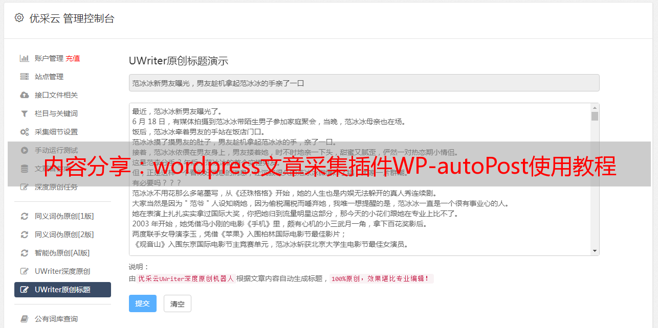 内容分享:wordpress文章采集插件WP-autoPost使用教程