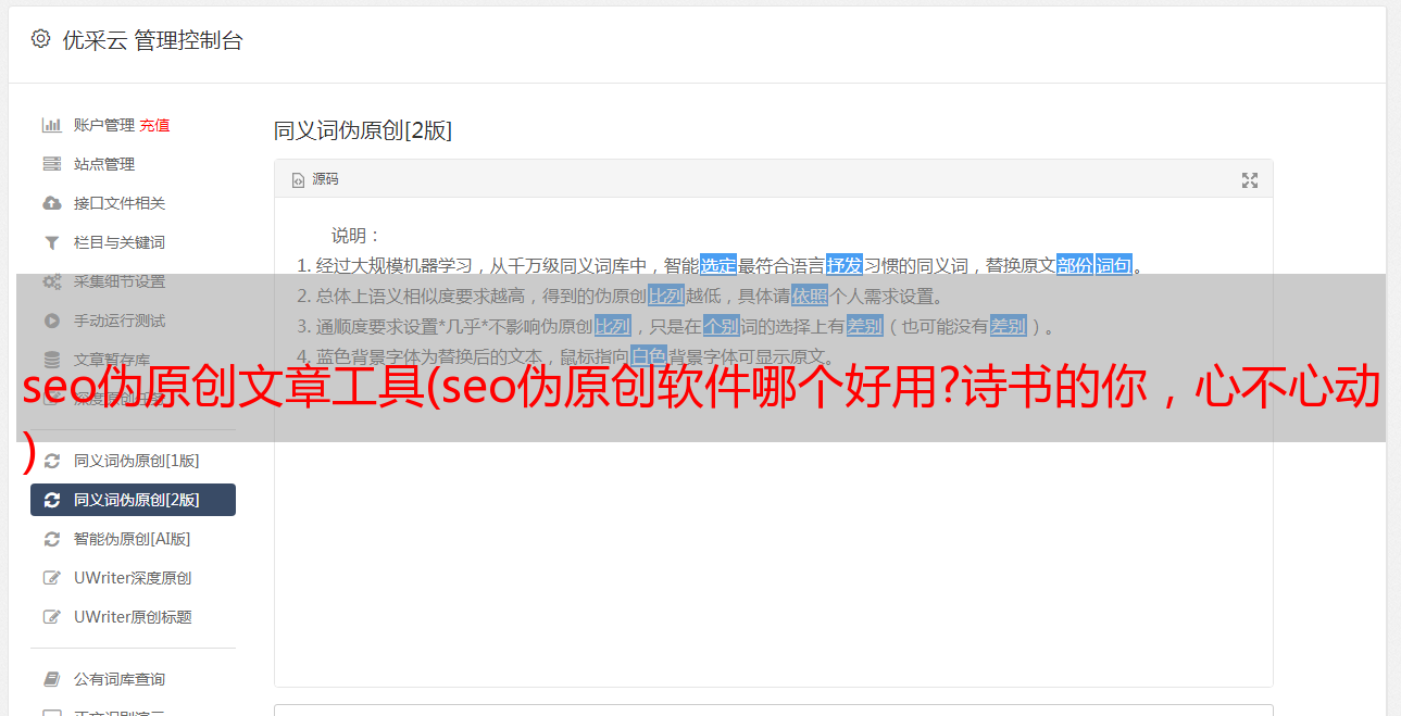 seo伪原创文章工具(seo伪原创软件哪个好用?诗书的你,心不心动 )