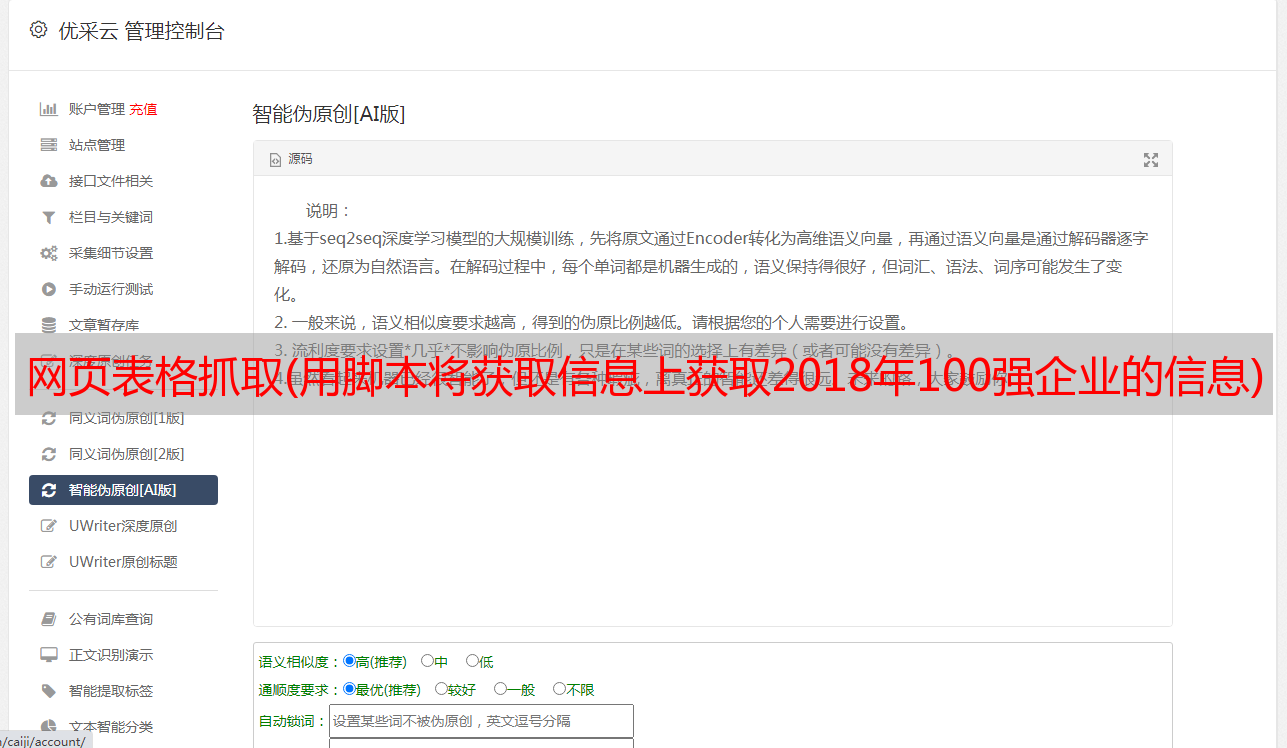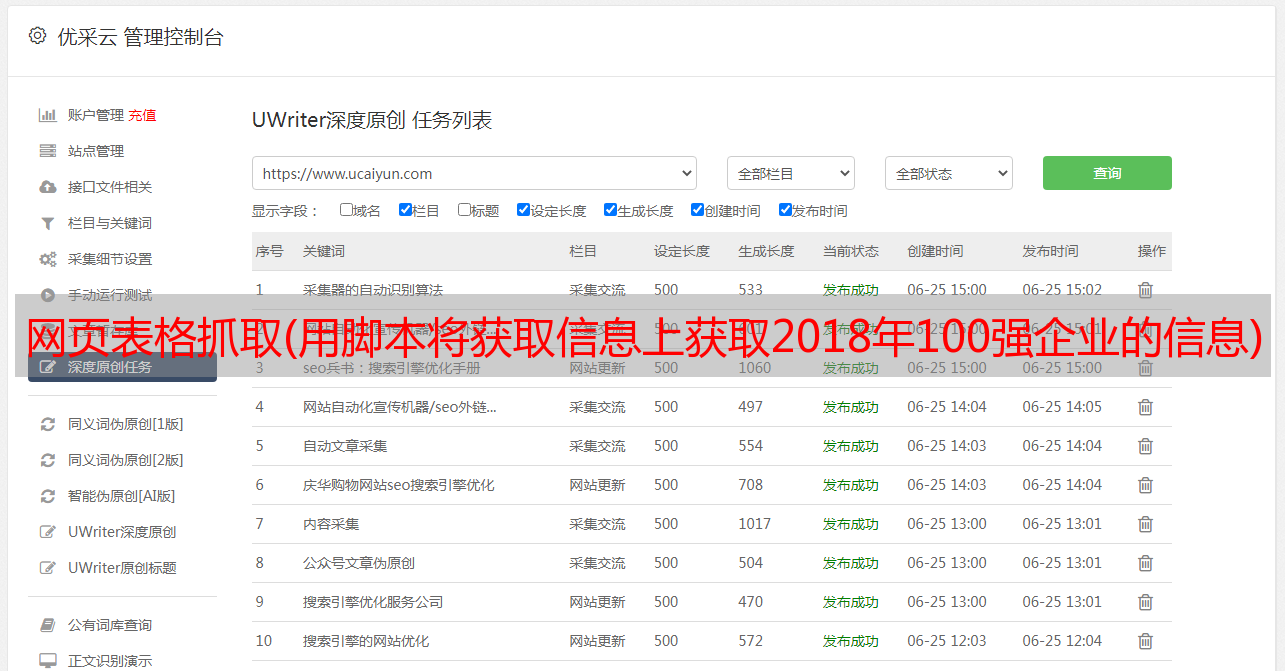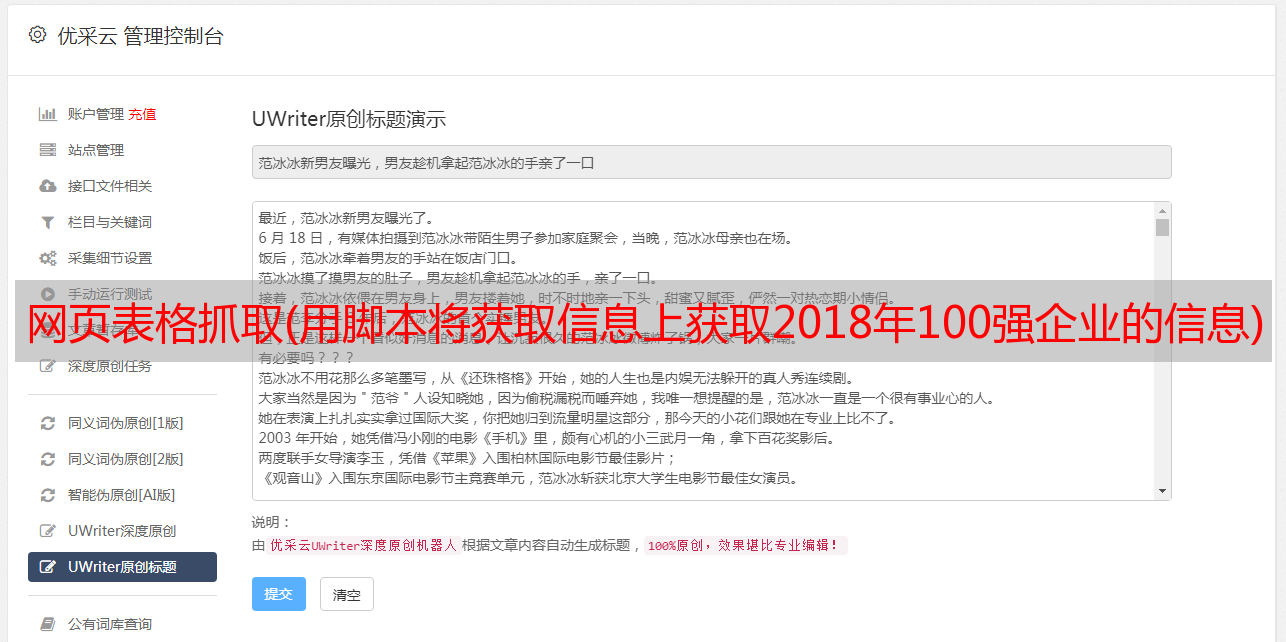 优采云 发布时间: 2021-10-13 06:04网页表格抓取(用脚本将获取信息上获取2018年100强企业的信息)