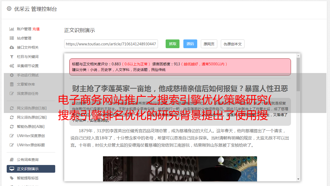 优采云 发布时间: 2021-10-13 08:41电子商务网站推广之搜索引擎优化策略研究(