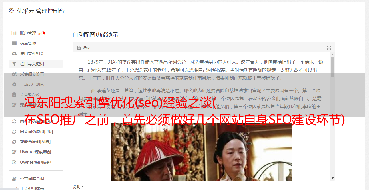优采云 发布时间: 2021-10-13 08:43冯东阳搜索引擎优化(seo)经验之谈(