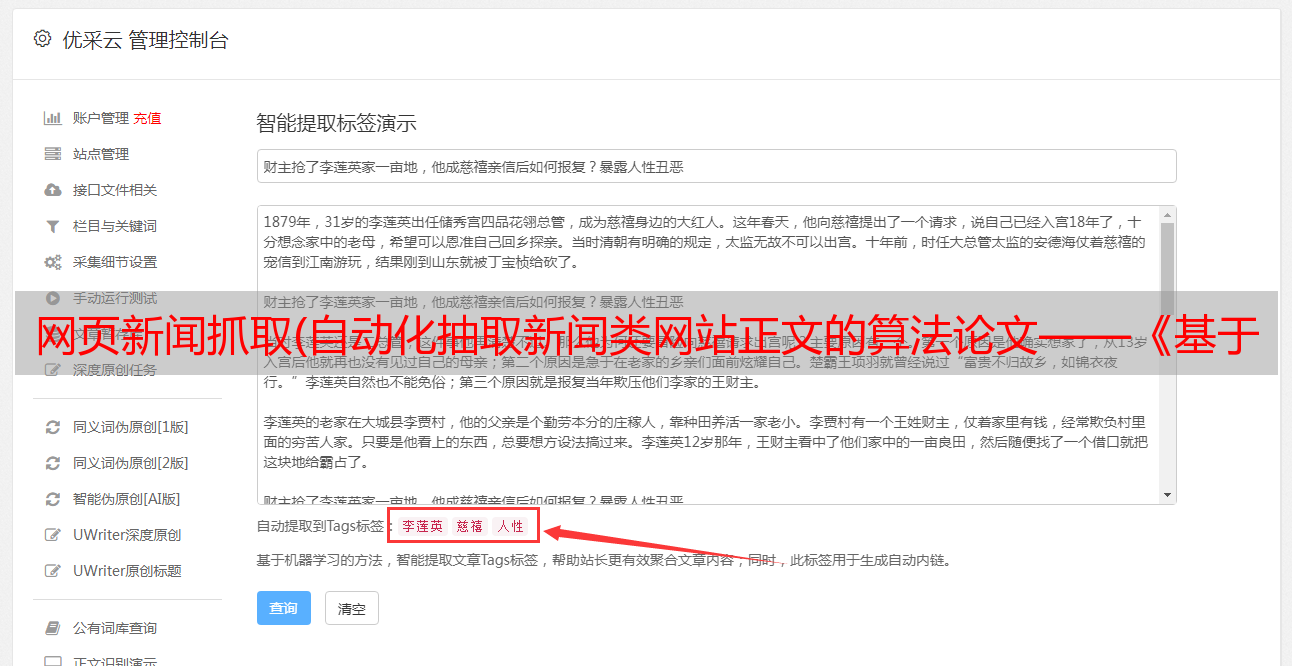 优采云 发布时间: 2021-10-13 16:19网页新闻抓取(自动化抽取新闻类网站正文的算法论文——《基于文本及符号密度的网页正文提取方法》)