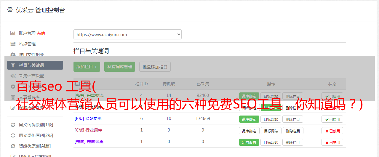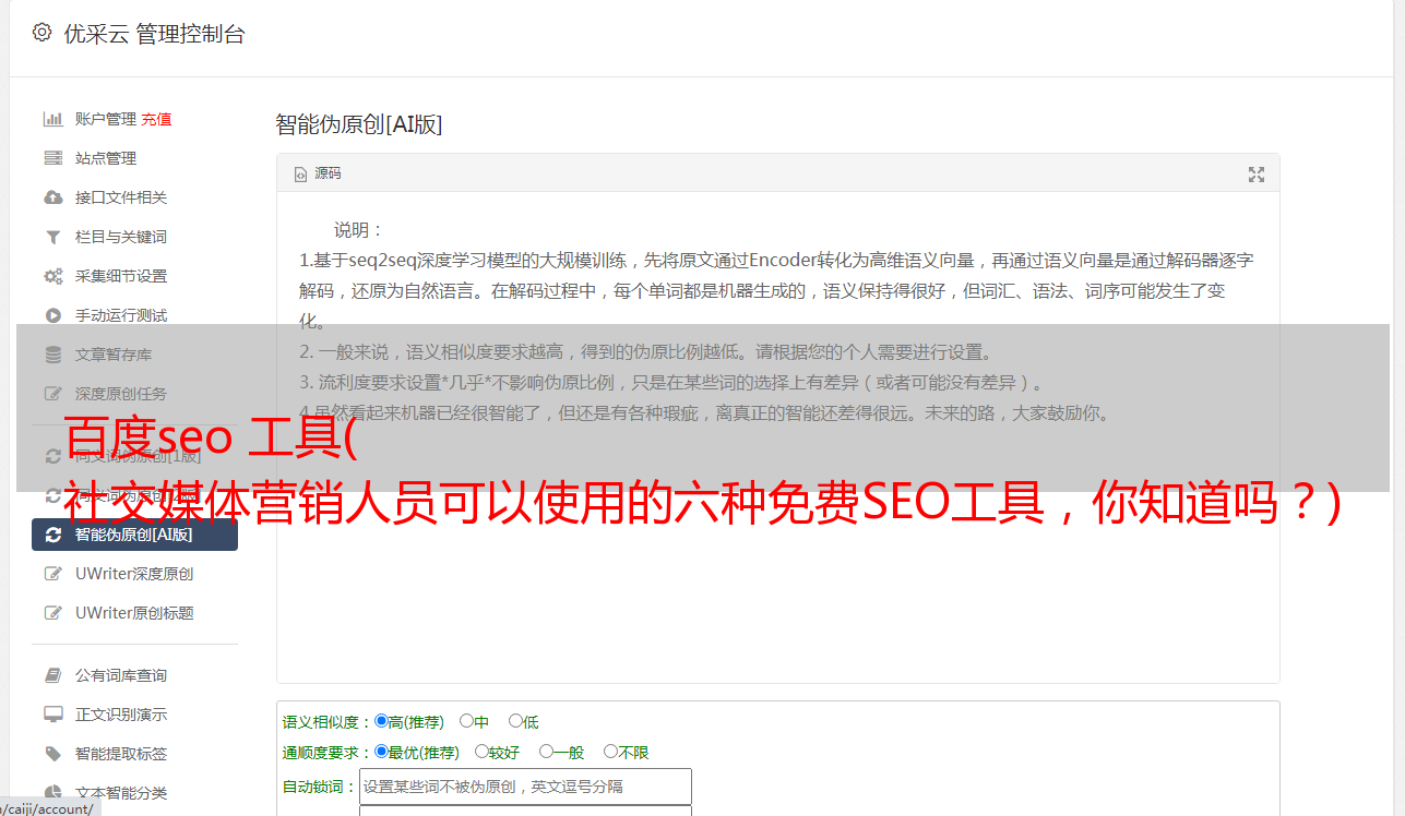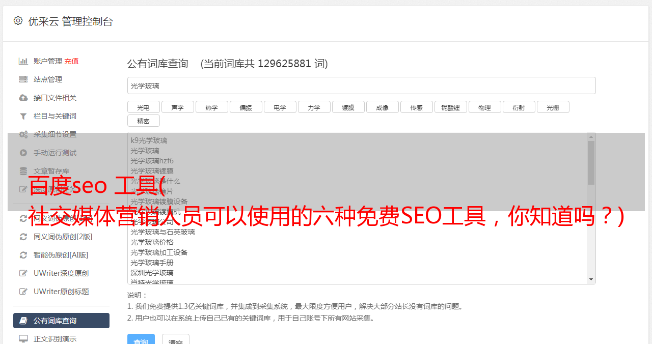 优采云 发布时间: 2021-10-13 18:10百度seo 工具(