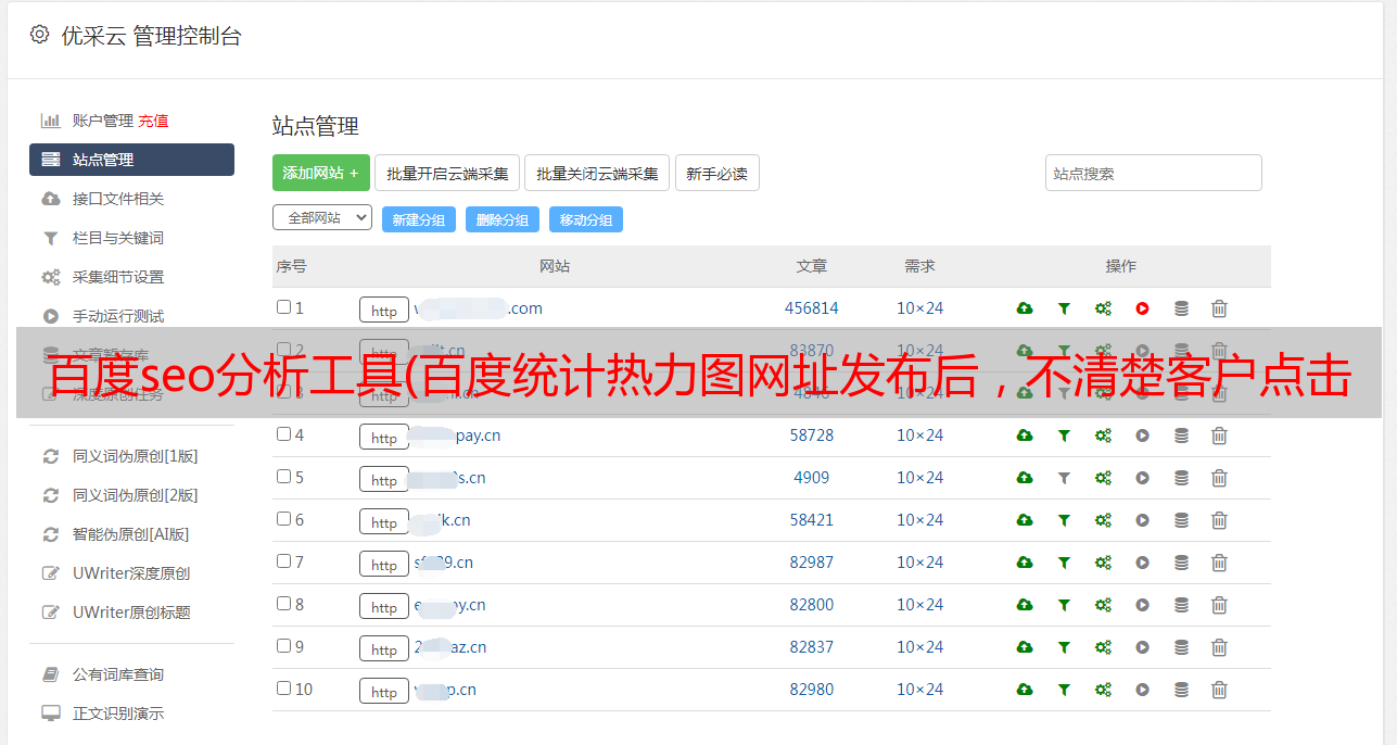 优采云 发布时间: 2021-10-13 22:06百度seo分析工具(百度统计热力图网址发布后,不清楚客户点击了网页页面这些地区?)