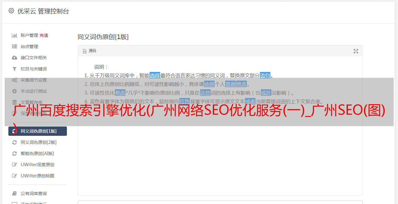 优采云 发布时间: 2021-10-13 22:28广州百度搜索引擎优化(广州网络SEO优化服务(一)_广州SEO(图)