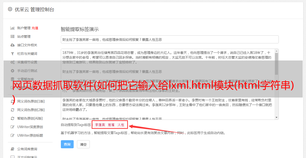优采云 发布时间: 2021-10-14 00:21网页数据抓取软件(如何把它输入给lxml.html模块(html字符串)