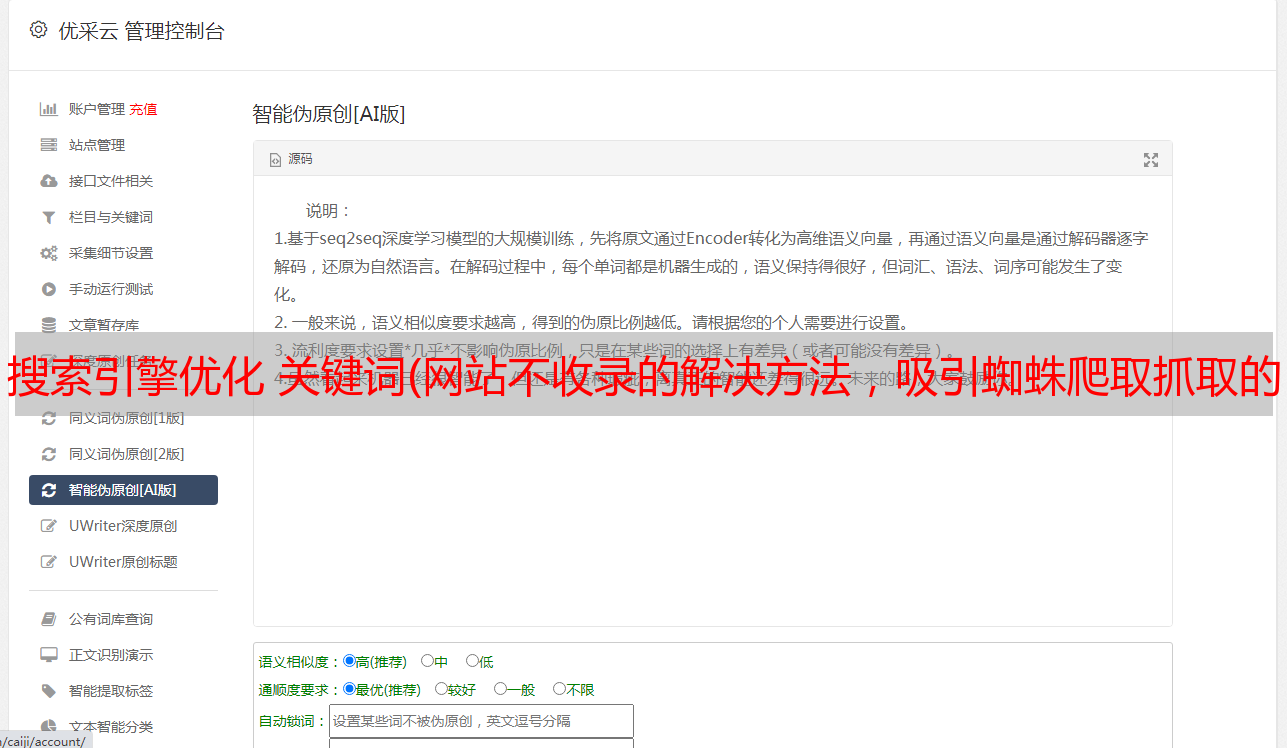 优采云 发布时间: 2021-10-14 04:15搜索引擎优化 关键词(网站不收录的解决方法,吸引蜘蛛爬取抓取的方法