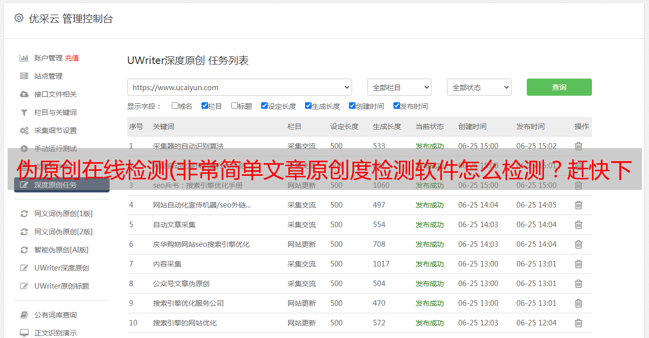 优采云 发布时间: 2021-10-14 05:33伪原创在线检测(非常简单文章原创度检测软件怎么检测?赶快下载试试吧!)