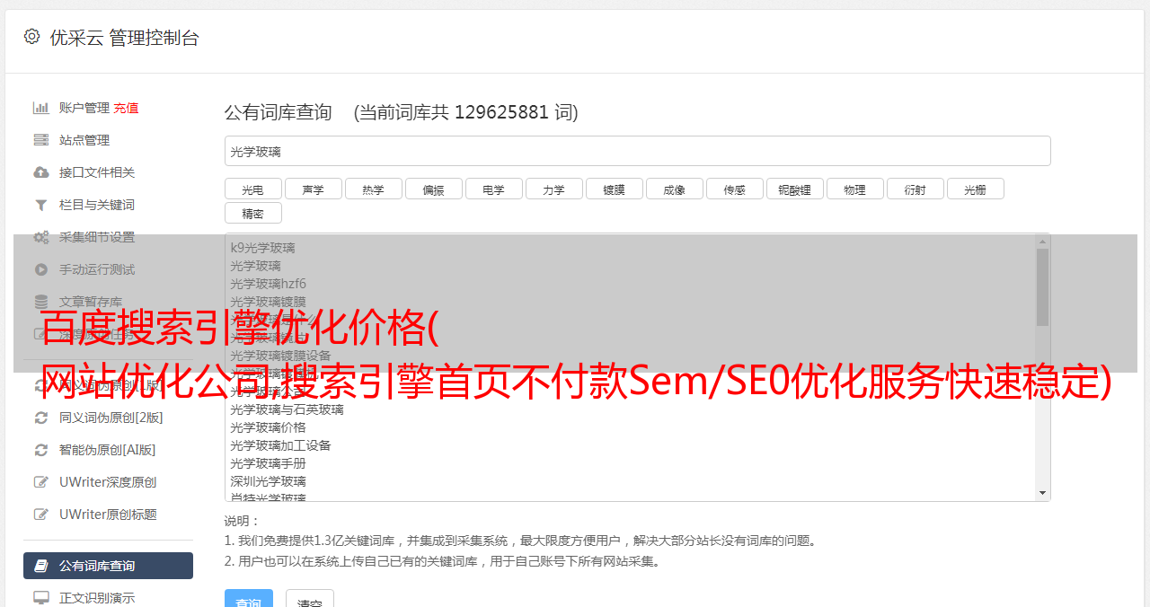 优采云 发布时间: 2021-10-14 05:39百度搜索引擎优化价格(