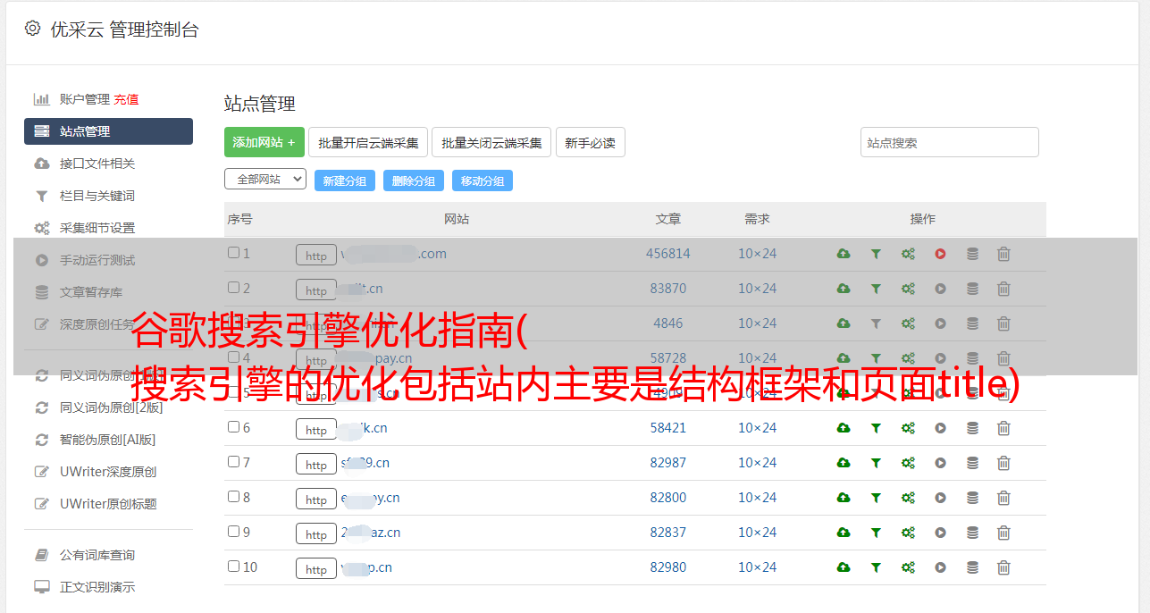 ogle 自上次爬取您的网站 后内容是否发生变化 支持此功能可以节省您的带宽和开销。使用 Web 服务器上的 robotstxt 文件。这个文件会告诉爬虫可以爬取哪些目录。无法抓取 请确保该文件是适合您的最新版本网站,以免意外阻止访问 Googlebot 的抓取工具。了解如何在机器人访问您的 网站 时向其提供说明。您可以使用谷歌网站站长工具中提供的robotstxt分析工具对robotstxt文件进行测试,尽可能保证文件使用正确,保证广告不会影响搜索引擎排名。例如,robotstxt 文件将阻止抓取 Google AdSense 广告和 DoubleClick 链接。如果贵公司采购内容管理财务成本管理系统、文件管理系统、成本管理、项目成本管理、行政管理系统、系统,请确保搜索引擎能够抓取系统创建的网页和链接。使用 robotstxt 避免抓取搜索结果页面或其他自动生成的网页。这些网页不会给搜索引擎用户带来太多的附加价值。测试网站,确保可以在不同浏览器中正确显示。监控网站的性能,优化加载时间。Google 的目标是为用户提供相关信息。最高的搜索结果和最佳的用户体验。网站的快速速度可以增加用户满意度,提高网页的整体质量。