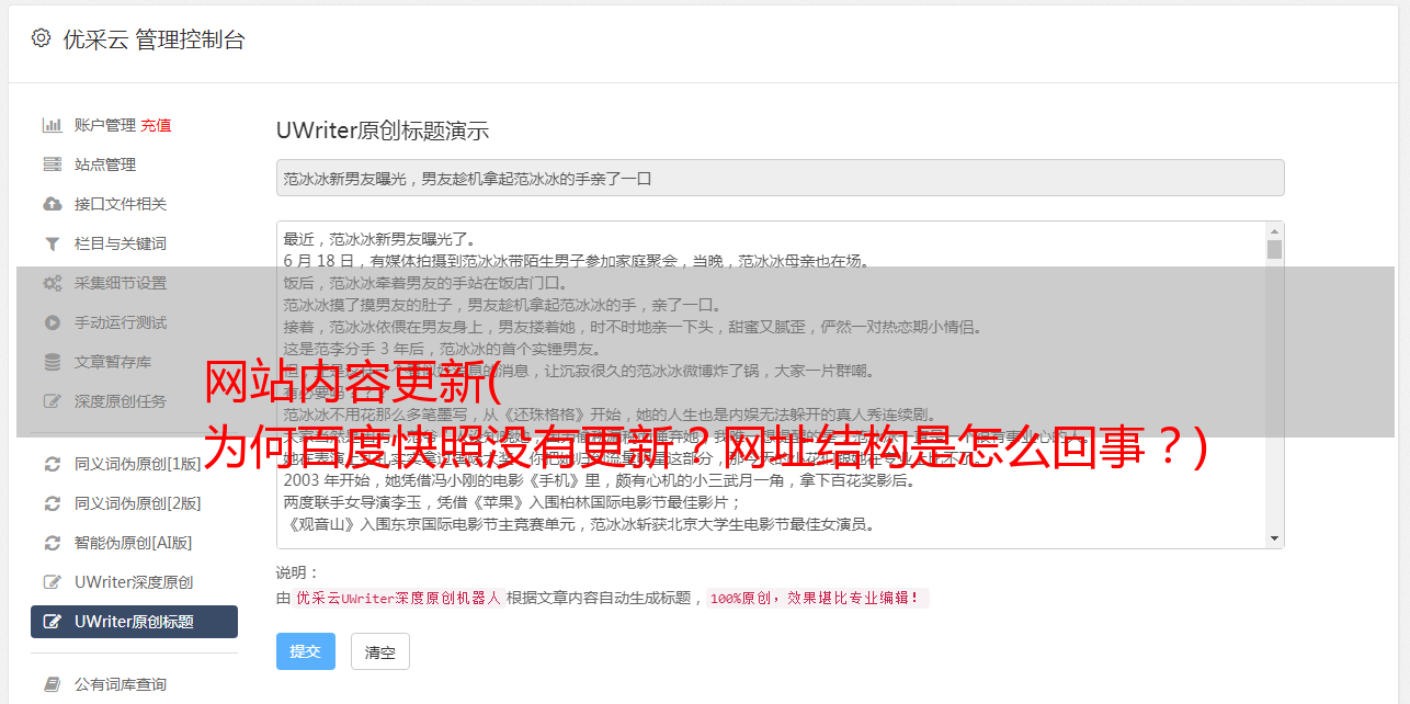 网站内容更新( 为何百度快照没有更新?网址结构是怎么回事?)