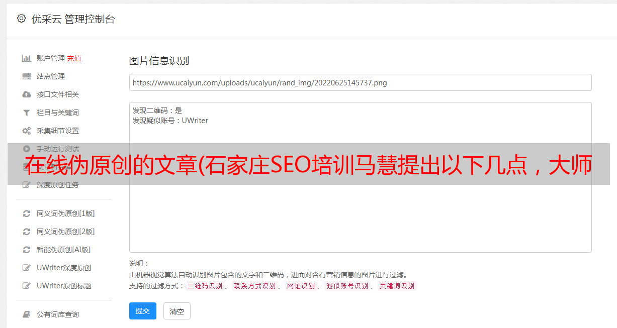 石家庄SEO培训 马辉SEO尝试了好几款网上伪原创软件,发现小小课堂上停伪原创网站的都是基于这类软件。伪原创 操纵。