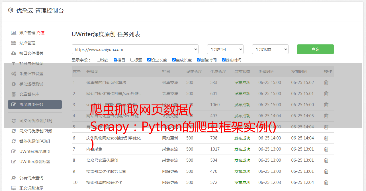 优采云 发布时间: 2021-10-14 12:35爬虫抓取网页数据(