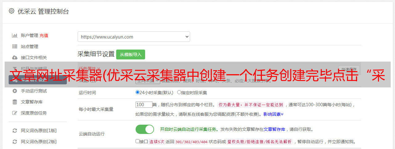 文章网址采集器(优采云采集器中创建一个任务创建完毕点击“采集器设置”)