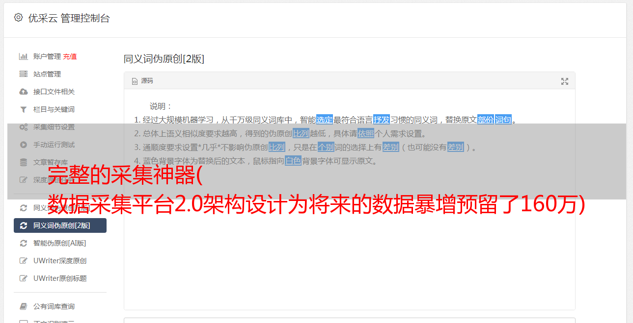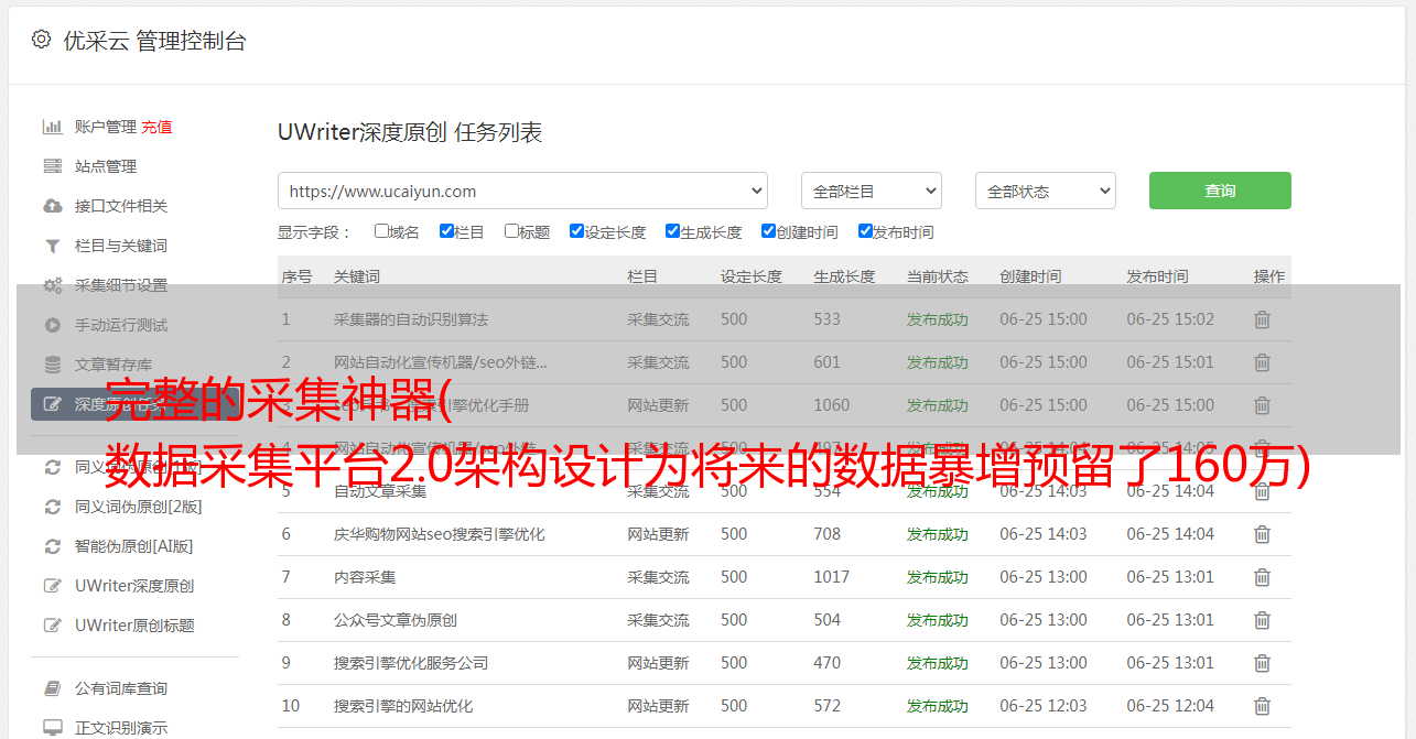 完整的采集神器( 数据采集平台2.0架构设计为将来的数据暴增预留了160万)