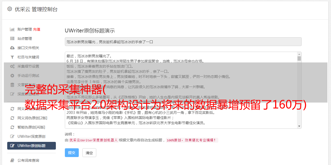 优采云 发布时间: 2021-10-14 14:06完整的采集神器(