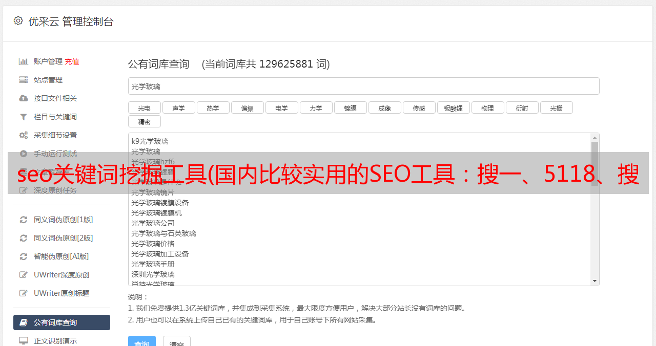 优采云 发布时间: 2021-10-14 16:21seo关键词挖掘工具(国内比较实用的SEO工具:搜一、5118、搜一搜)