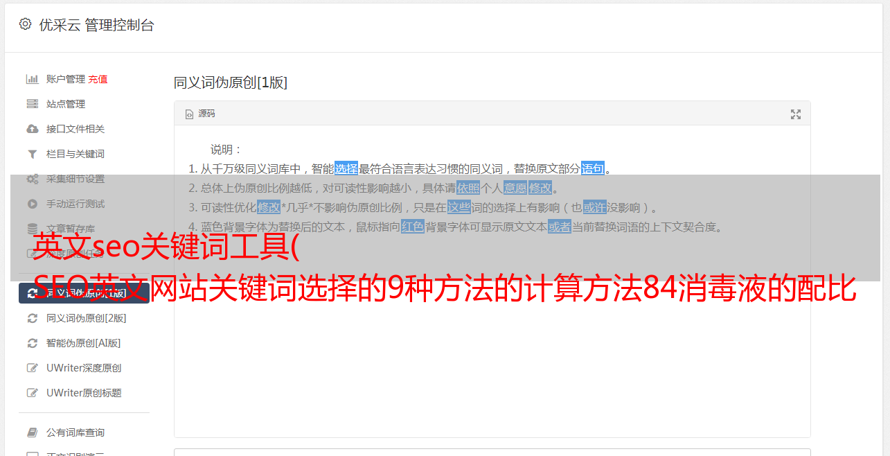英文seo关键词工具( SEO英文网站关键词选择的9种方法的计算方法84消毒液的配比方法)
