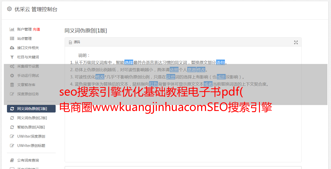 优采云 发布时间: 2021-10-14 21:01seo搜索引擎优化基础教程电子书pdf(