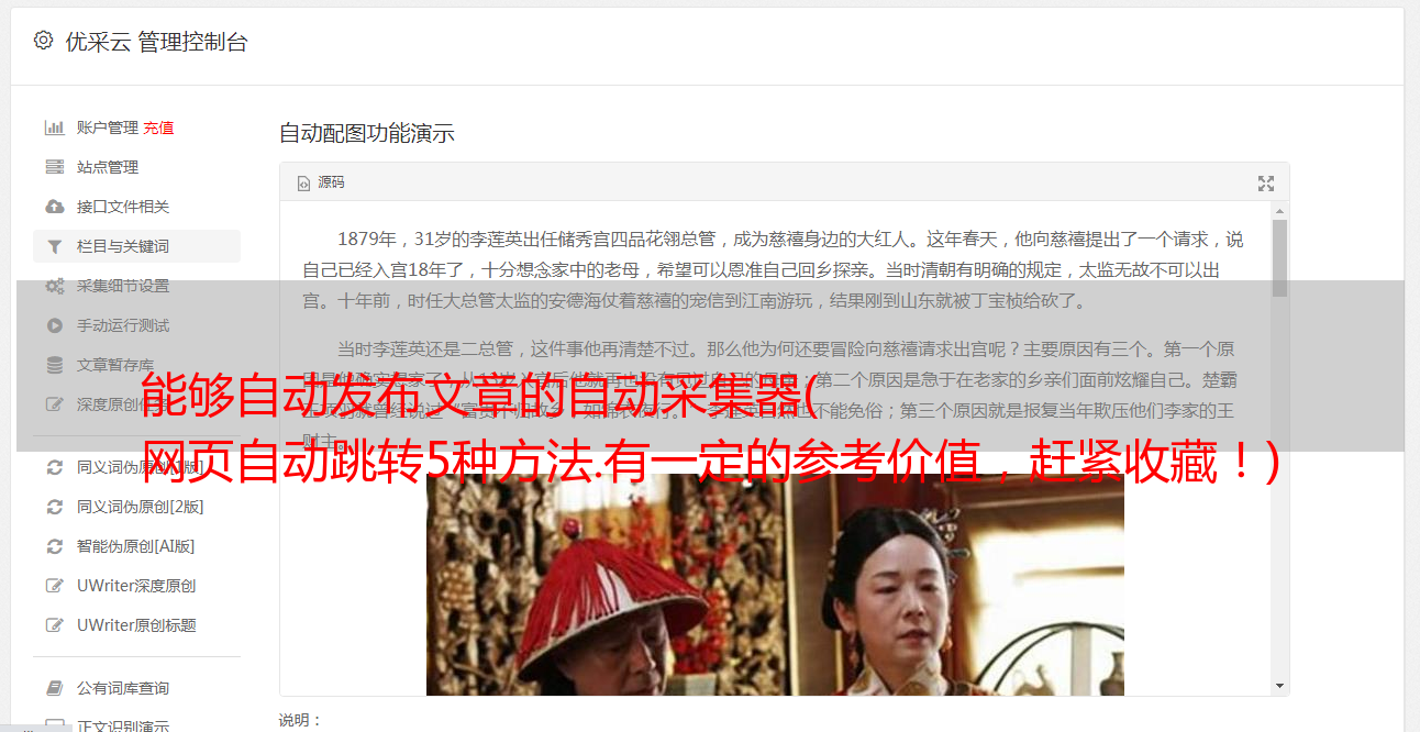 优采云 发布时间: 2021-10-14 23:27能够自动发布文章的自动采集器(