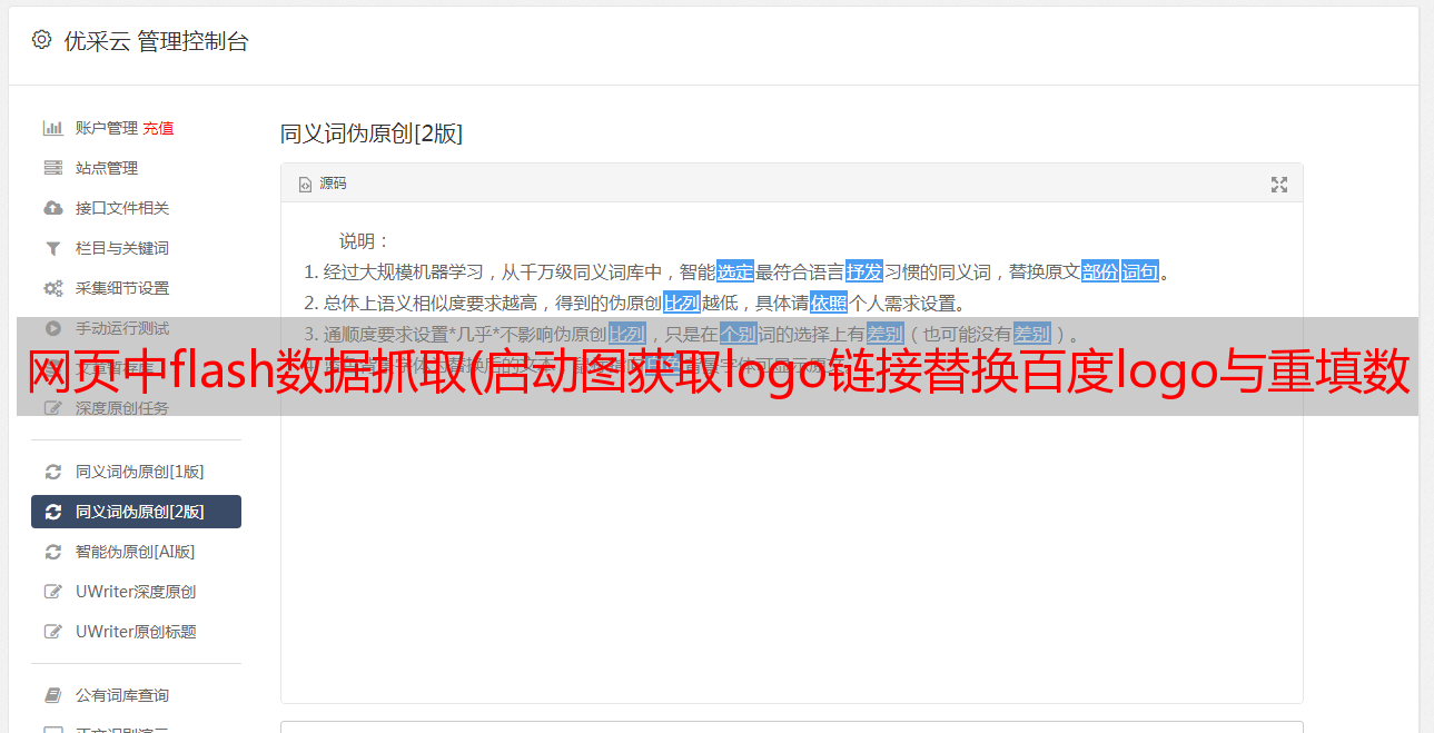 优采云 发布时间: 2021-10-15 01:18网页中flash数据抓取(启动图获取logo链接替换百度logo与重填数据(组图))