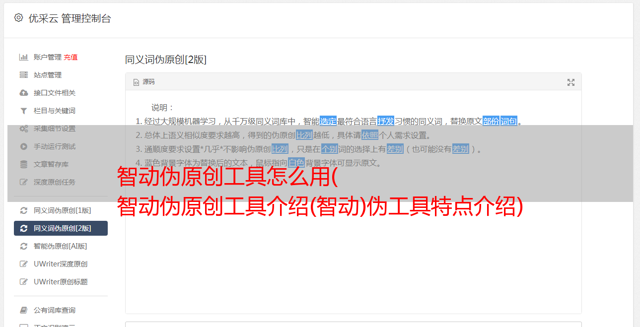 优采云 发布时间: 2021-10-15 06:12智动伪原创工具怎么用(