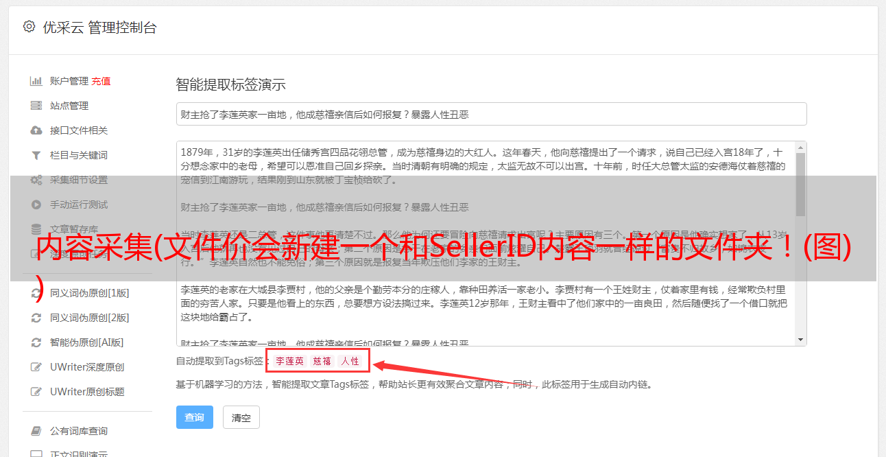 优采云 发布时间: 2021-10-15 07:11内容采集(文件价会新建一个和SellerID内容一样的文件夹!(图)