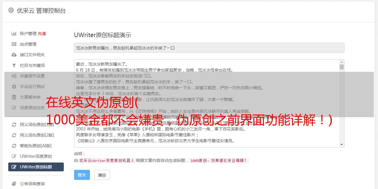 在线英文伪原创( 1000美金都不会嫌贵,伪原创之前界面功能详解!)