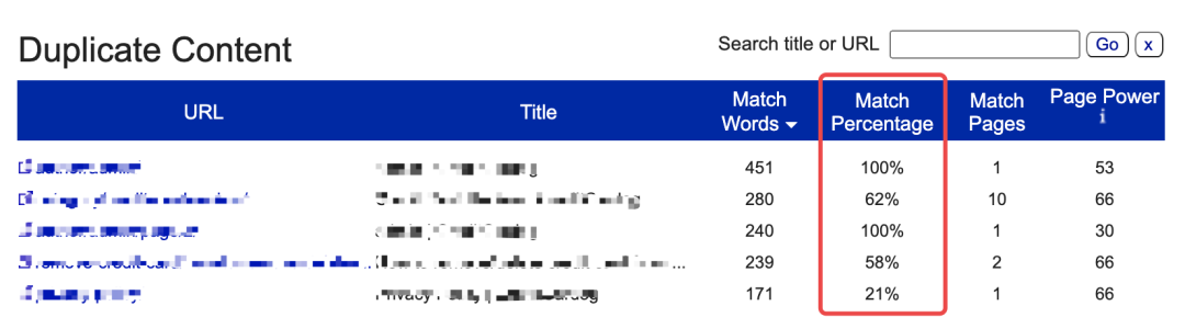 如果有和其他网站重复的内容,会显示在红框处。如果重复的内容大于10%,就会被认定为垃圾站点。