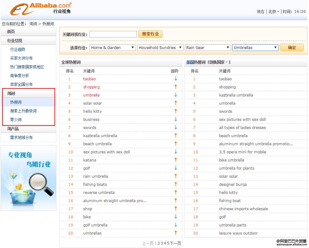 通过阿里巴巴行业指数网