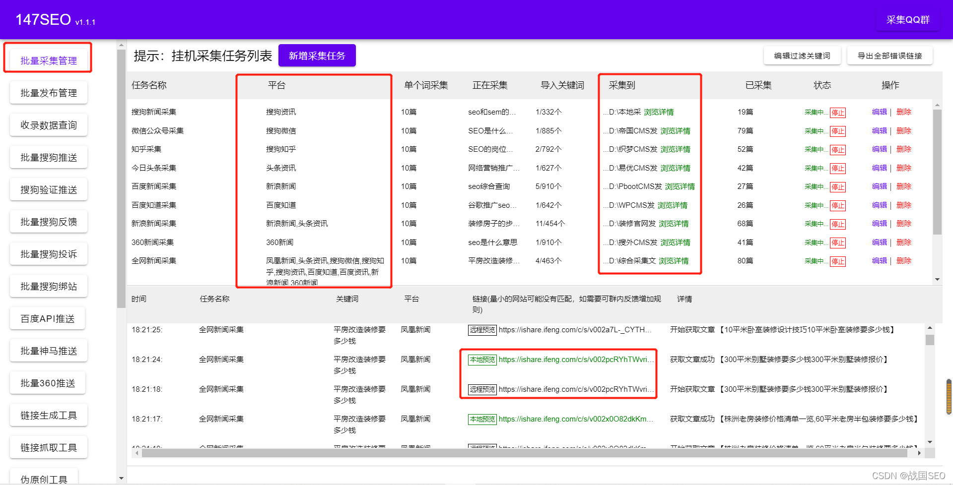 2、传送门文章采集:一键搜索采集相关传送门网站新闻文章、网站有搜狐、腾讯、新浪、网易.com、今日头条、新兰网、联合早报、光明网、站长网、新文化网等,用户可以进入行业关键词搜索想要的行业文章。该模块的特点是无需编写采集规则,一键操作。友情提示:使用文章时请注明文章出处,尊重原文版权。
