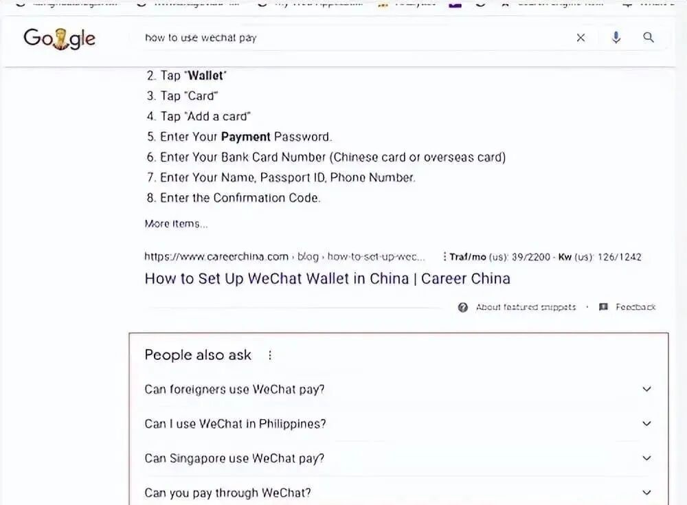 这个工具的一大好处是,如果你想判断一个关键词是否值得做,你可以在谷歌中搜索,然后一眼就可以看到这个关键词的置顶内容DA,反向链接。