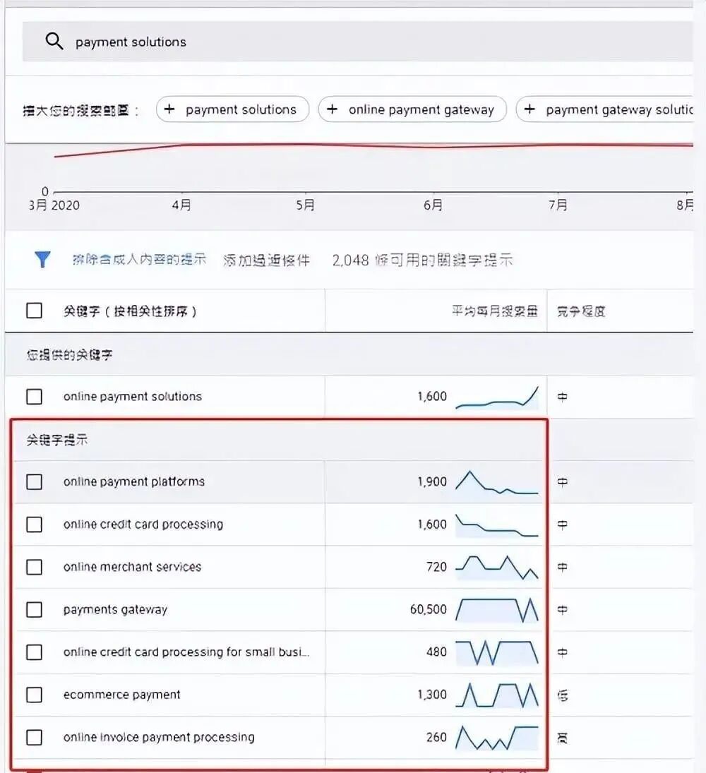 这个工具可以让你在谷歌搜索一个关键词,不仅可以看到这个关键词的流量大小和难度,还能给你一系列和这个关键词的相似之处关键词 ,它可以为您提供更多关于新内容的想法。